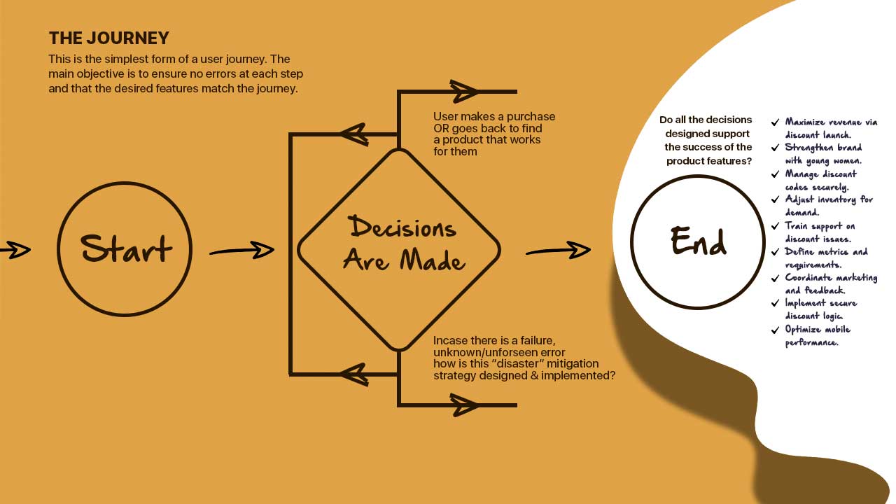 Literally walk it through. User journeys are meant to help product owners understand where their users come from, what their needs are (and how to handle disappointment when they don’t find what they are looking for) and most importantly assist in removing those sought after features that are just not going to be used (e.g. eCommerce in Kenya is a different ball game and so having a cart for an online fruit & veg store could be overkill).